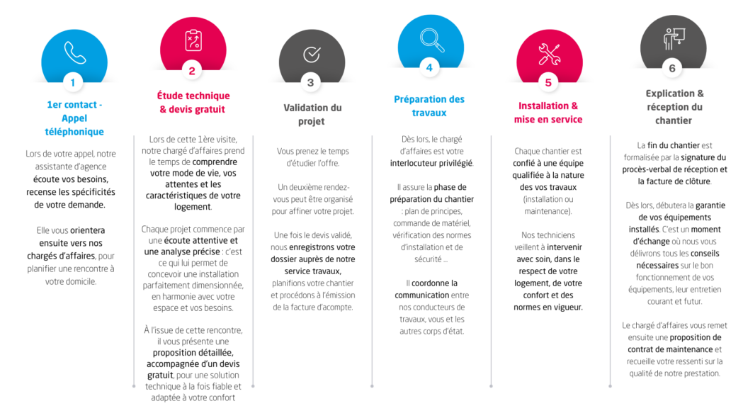 Nous nous déplaçons gratuitement. Votre chargé d’affaires s’occupe de définir avec vous la faisabilité technique de votre projet. Apportant conseils et explications détaillées, sympathie et courtoisie pour vous éclairer dans vos choix, il saura trouver les équipements de climatisation et de chauffage les mieux adaptés à votre besoin.